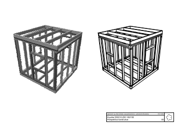 Rozměry rámů šířka/výška-délka 250/210-250cm Plocha zastavěná/užitná-objem 6,45/6,14m²-16,13m³ Tloušťka rámů stěna/strop, zateplení 100/150mm nezatepleno Základová konstrukce zakládací prahy, vruty Vnější povrchy fasáda - palubky, krytina - folie Vnitřní povrchy stěny - palubky; podlaha - OSB + lino; strop - OSB
