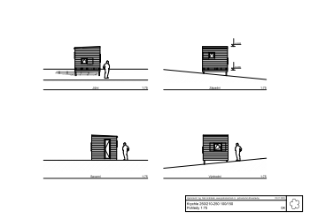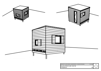 Rozměry rámů šířka/výška-délka 250/210-250cm Plocha zastavěná/užitná-objem 6,45/6,14m²-16,13m³ Tloušťka rámů stěna/strop, zateplení 100/150mm nezatepleno Základová konstrukce zakládací prahy, vruty Vnější povrchy fasáda - palubky, krytina - folie Vnitřní povrchy stěny - palubky; podlaha - OSB + lino; strop - OSB